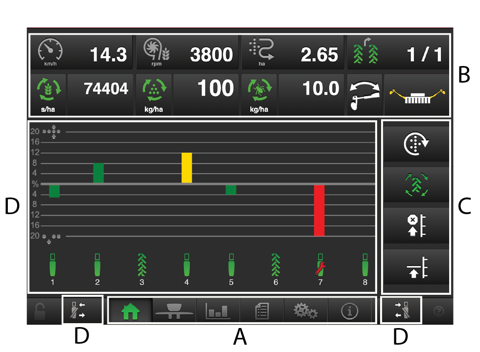 The home screen is the view shown whilst operating This shows all the information required for monitoring, and you can also adjust settings.