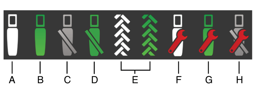If a red spanner is displayed, this indicates that there is an alarm on the row. There is a fault which needs to be inspected and remedied. There is no feed from the row.