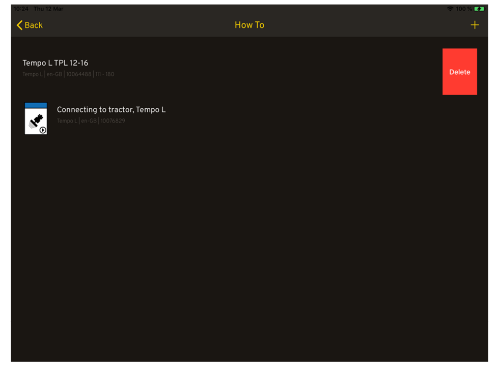 To delete instructions or a video. Swipe to the left of the instruction or video you want to delete and press Delete.