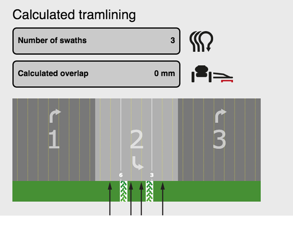 Tramlining compensation is a function that allows you to vary the feed rate using the tramline program. By entering a percentage in, all rows adjacent to a tramlining row will receive an increased feed rate, in accordance with the percentage entered.