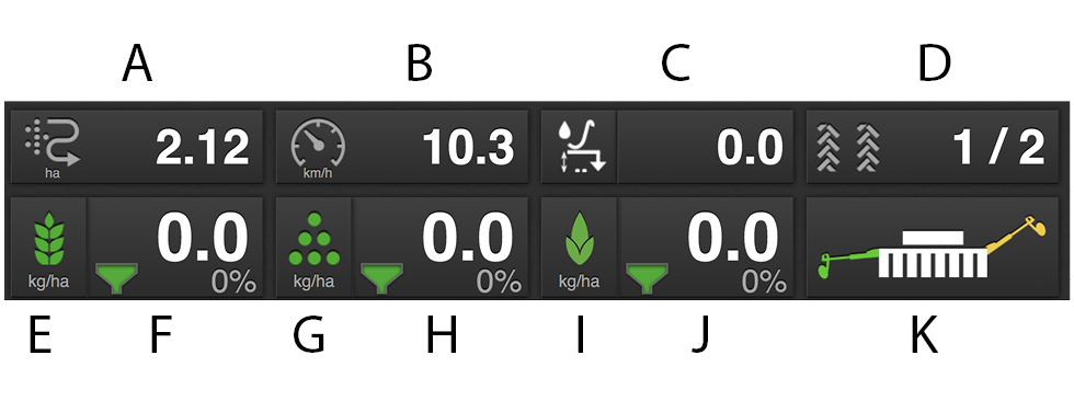Fertiliser On/Off fertiliser output. Green indicates that it is On.