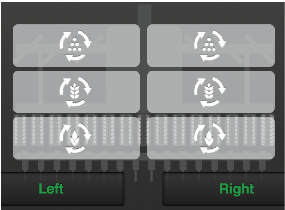 The part of the machine for which seed feed is shut off is shown by a white symbol against a grey background.