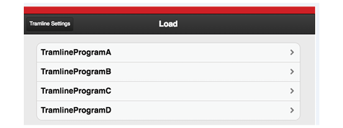 Press B to display a list of saved tramline programs. Open the saved program by selecting its name on the list, Figure 1.