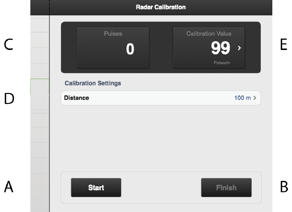 5. Shows calibration result as the number of radar pulses/m. (The factory default setting is 99 pulses).
