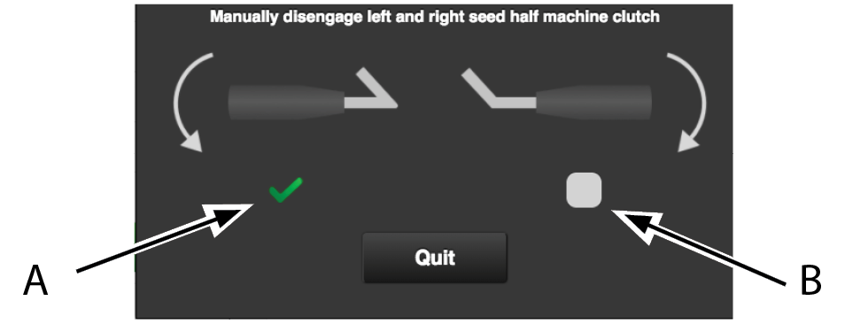3. Confirm that the half machine shut-off has been activated by clicking in boxes (A) and (B) in the pop-up window that is displayed.
