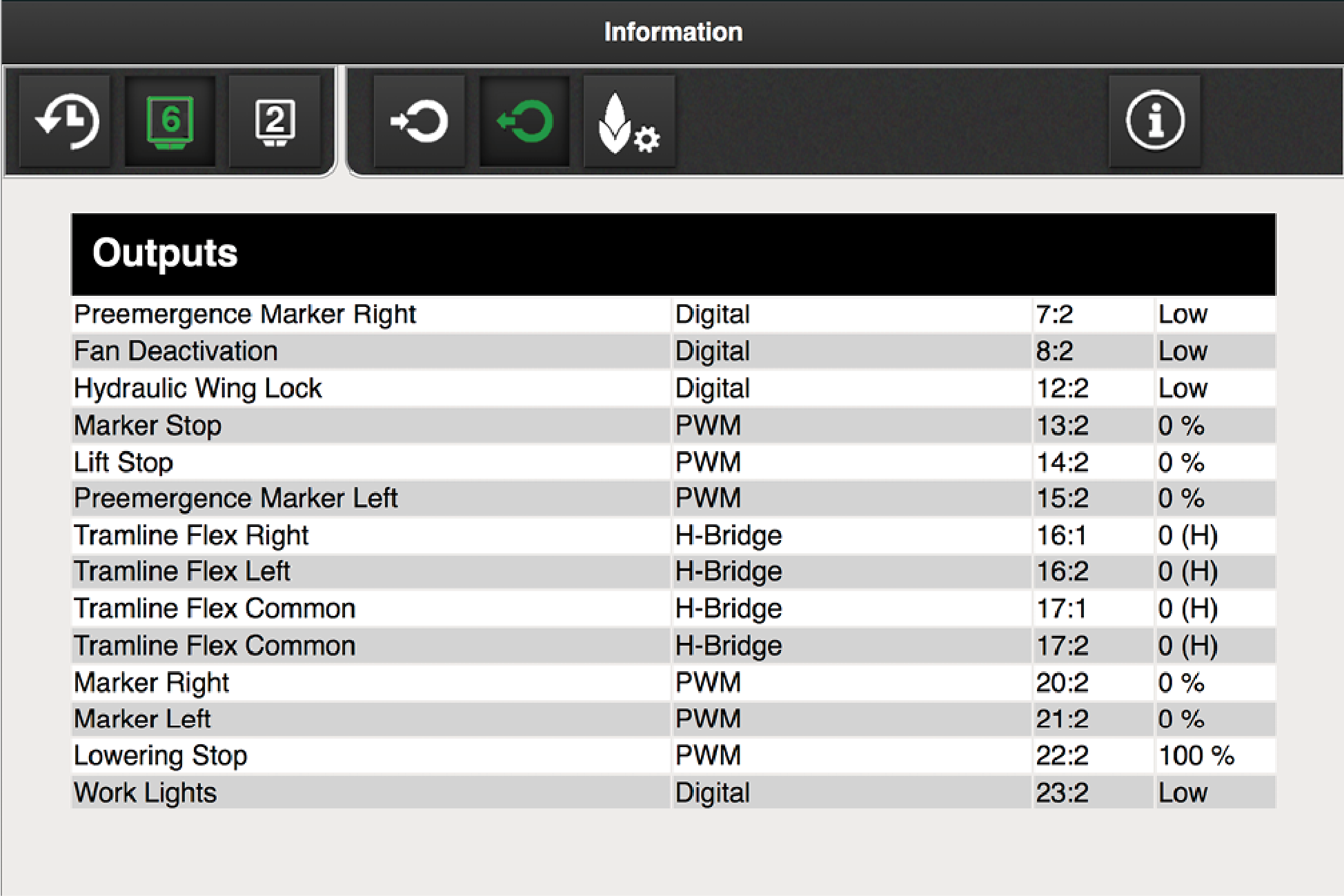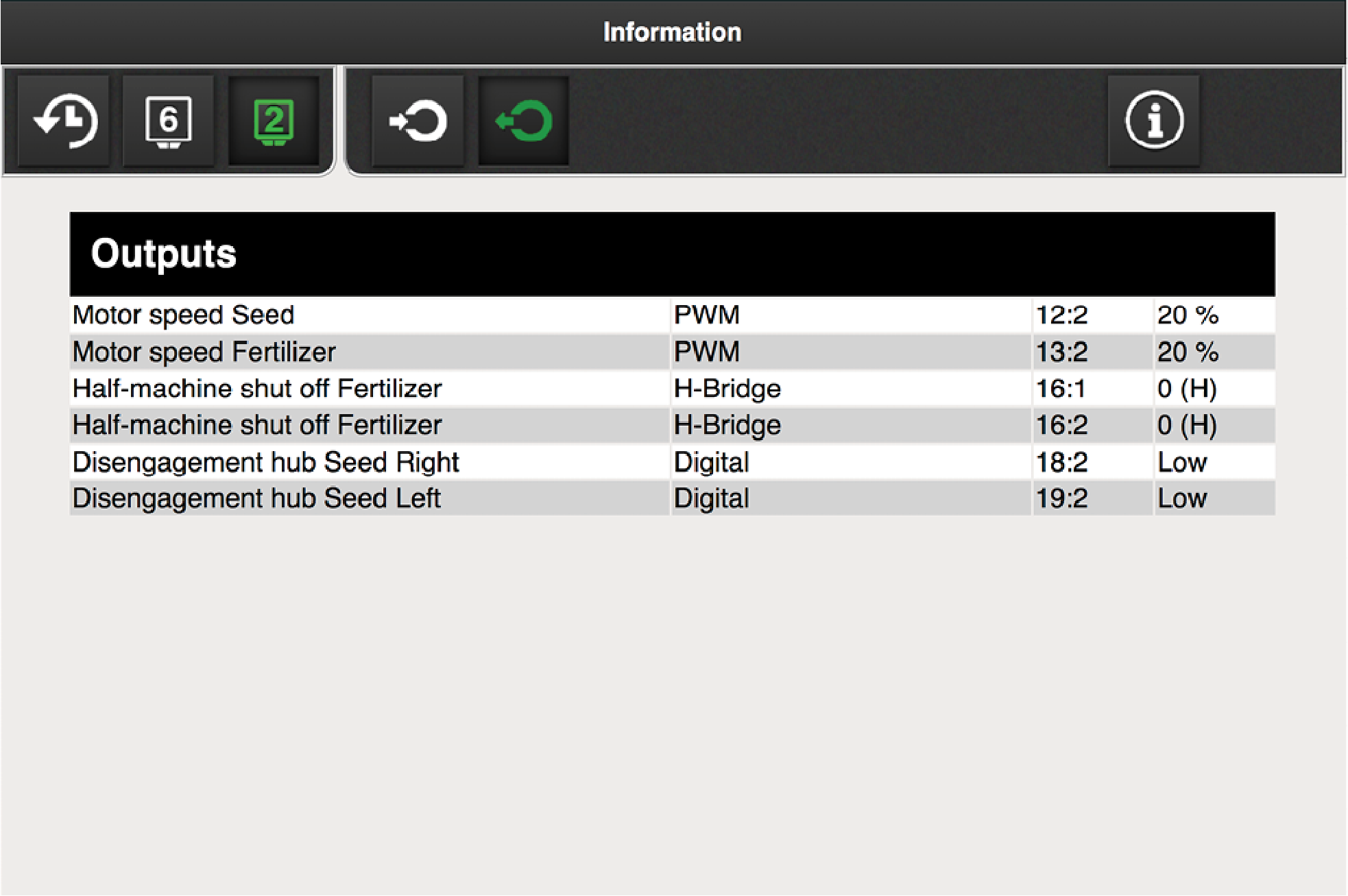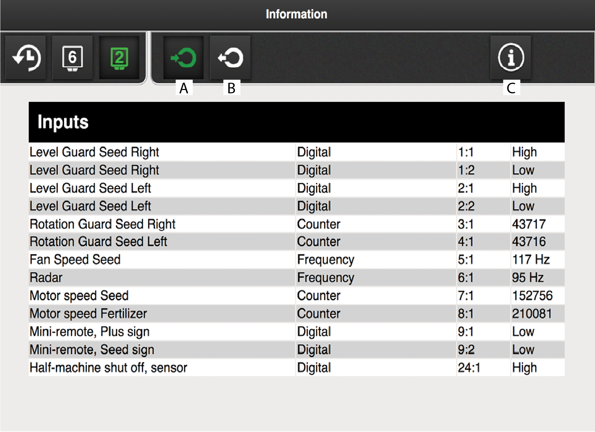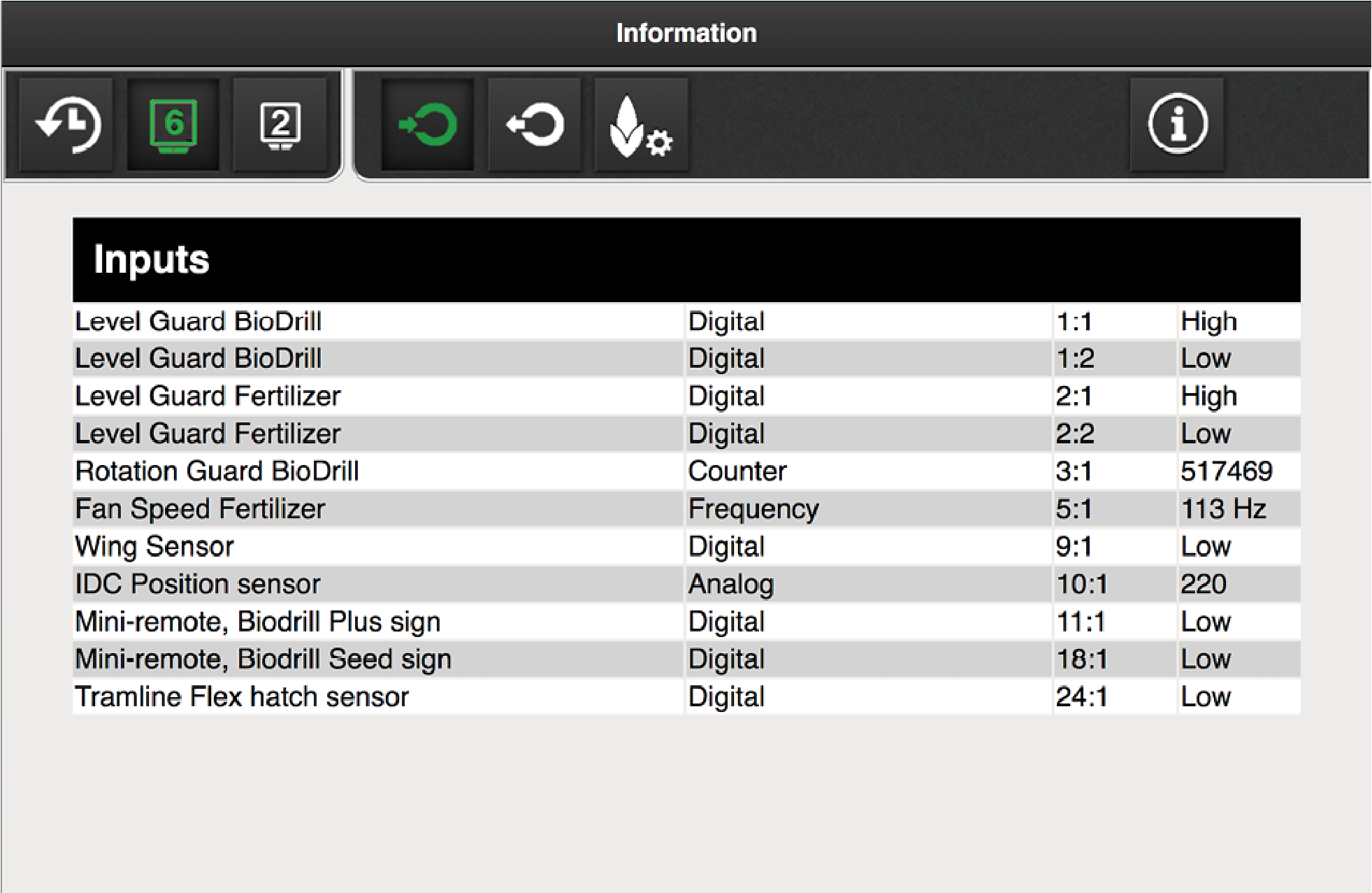 The images show the Workstation’s inputs and outputs during alarms (the icon in green indicates which information is displayed on the screen)