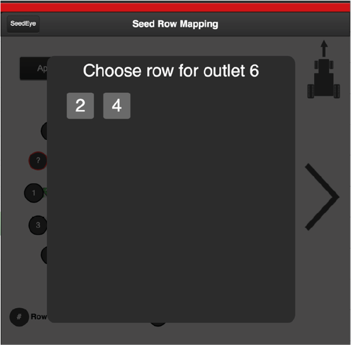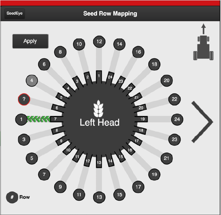 The ports on the distributor head connected to the tramlining engines show a green tractor track.