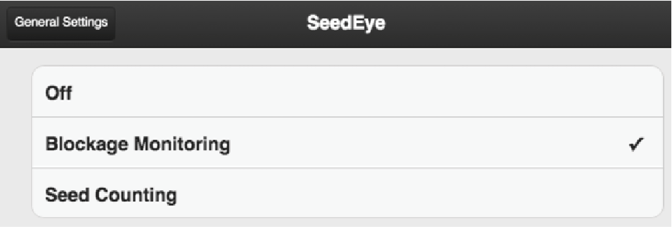 Select the desired SeedEye function: off, monitoring or seed counting. See Figure 2.