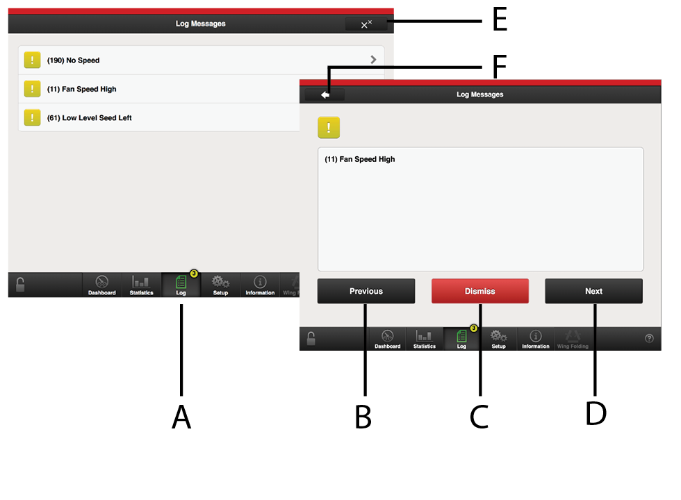 Select an alarm by using the UP/DOWN arrows on the VT or press an alarm field on the iPad. Information about the alarm is shown in the new window .